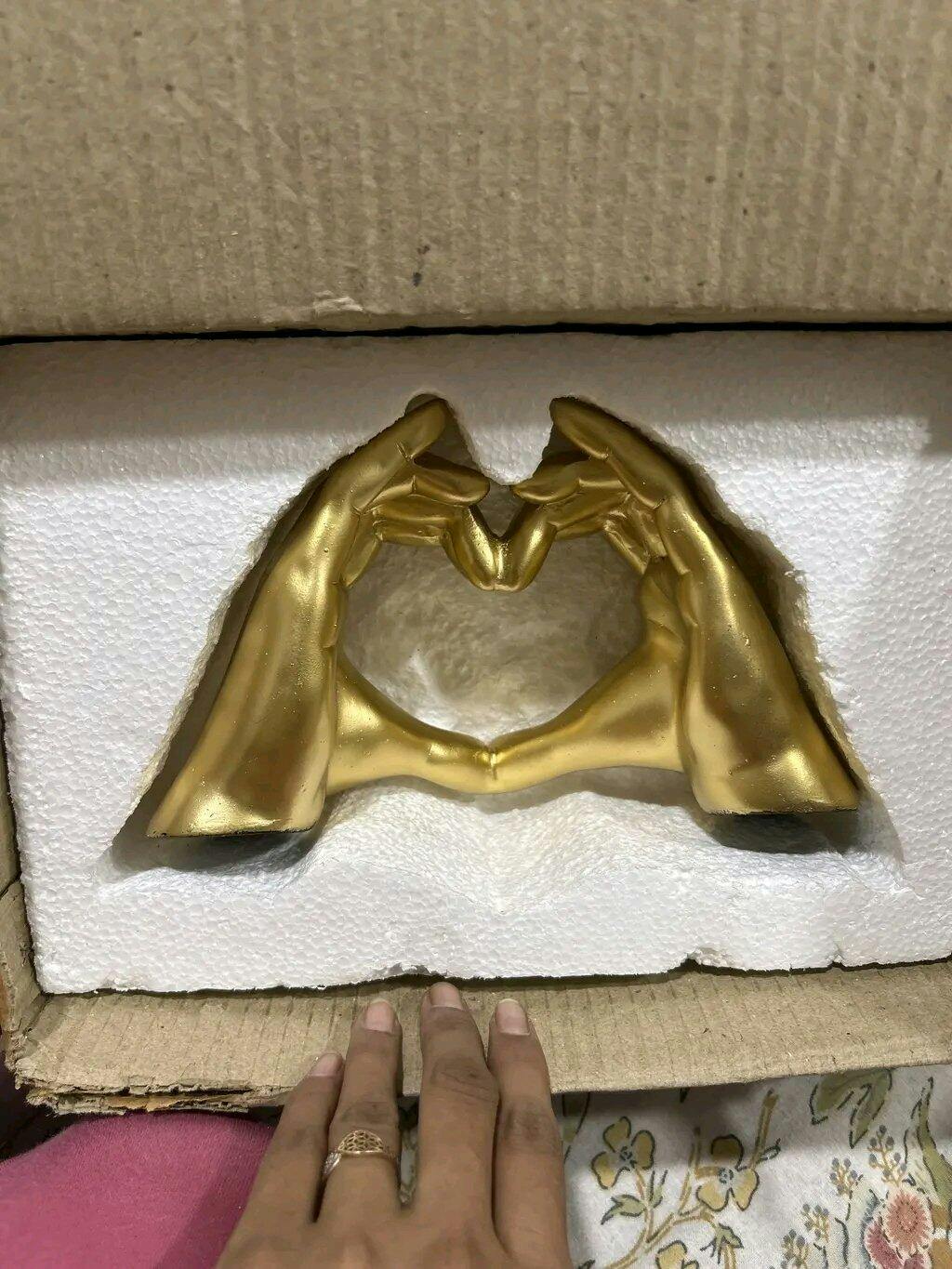Enhance your decor with this elegant Golden Hand Heart Sculpture, a refined piece that symbolizes love, connection, and harmony. Expertly crafted with a metallic gold finish, the sculpture features two hands gracefully forming a heart shape, making it a perfect statement accent for modern interiors, office spaces, or living areas. Its sophisticated design and symbolic meaning make it an ideal gift for loved ones or a striking addition to your home decor collection. A seamless blend of artistry and emotion, this piece adds both beauty and significance to any space.